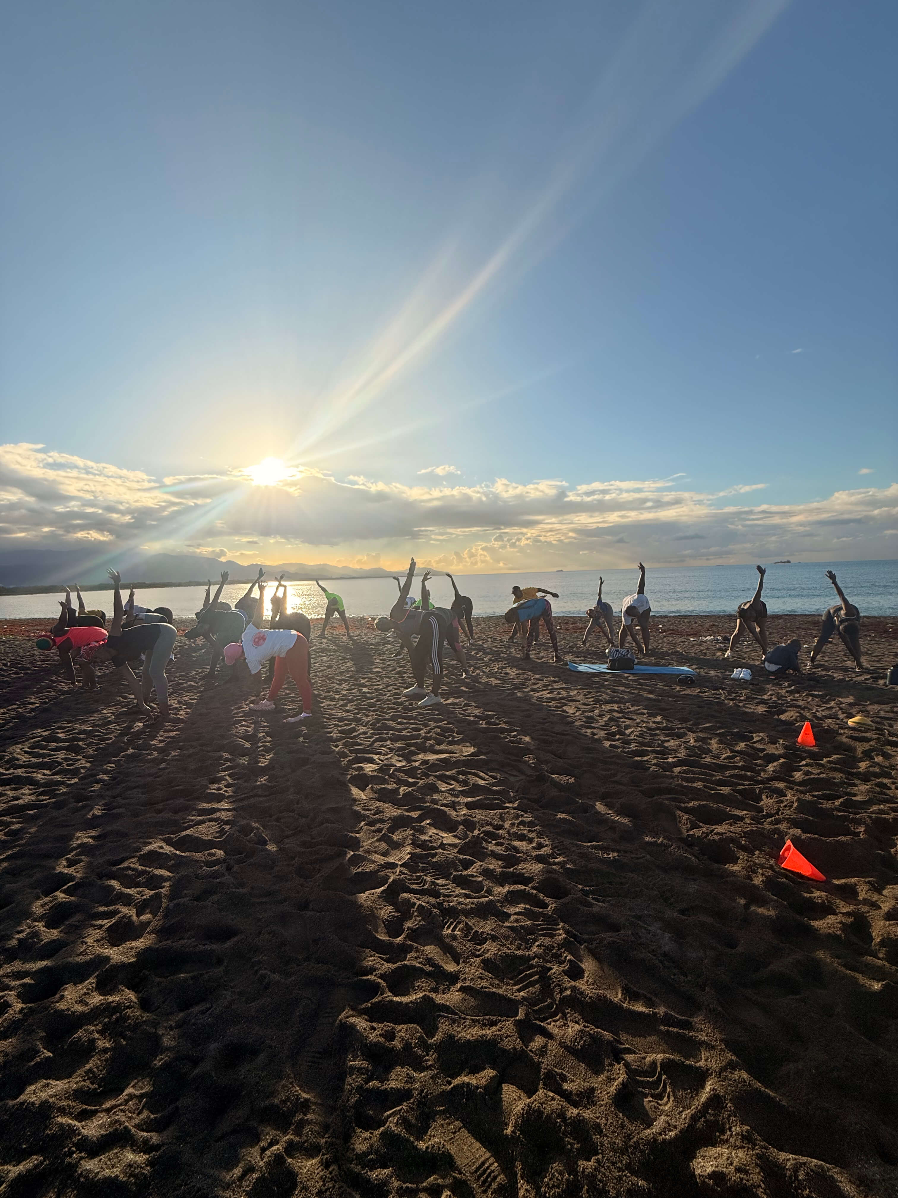 We started with a light 10-minute jog on the sand. Easy enough. The hill work we have been doing is clearly paying off. Then came the high knees, jumping jacks, and squats. Standard Lifestyle Hikers warmup energy.